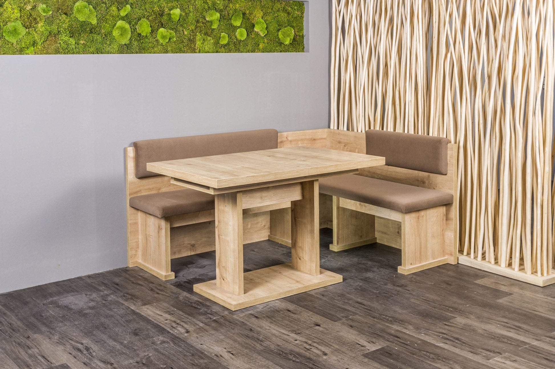 Tipska kotna klop, pri kateri lahko iz istih delov sestavite levo ali desno izvedbo. Na voljo je v dveh dimenzijah: