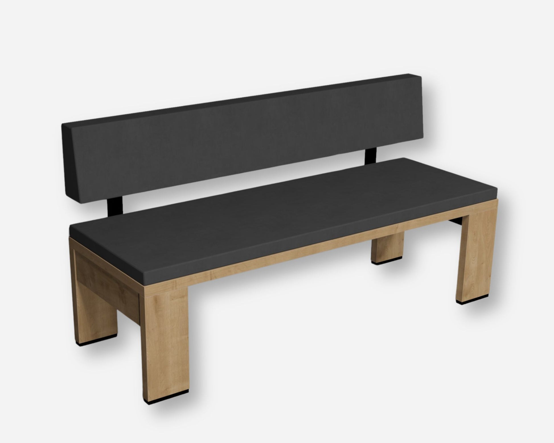 Ravna klop s tapeciranim sediščem in naslonom. Ravna verzija klopi Delta nima predvidenega prostora za spravilo dodatnega sedišča.
