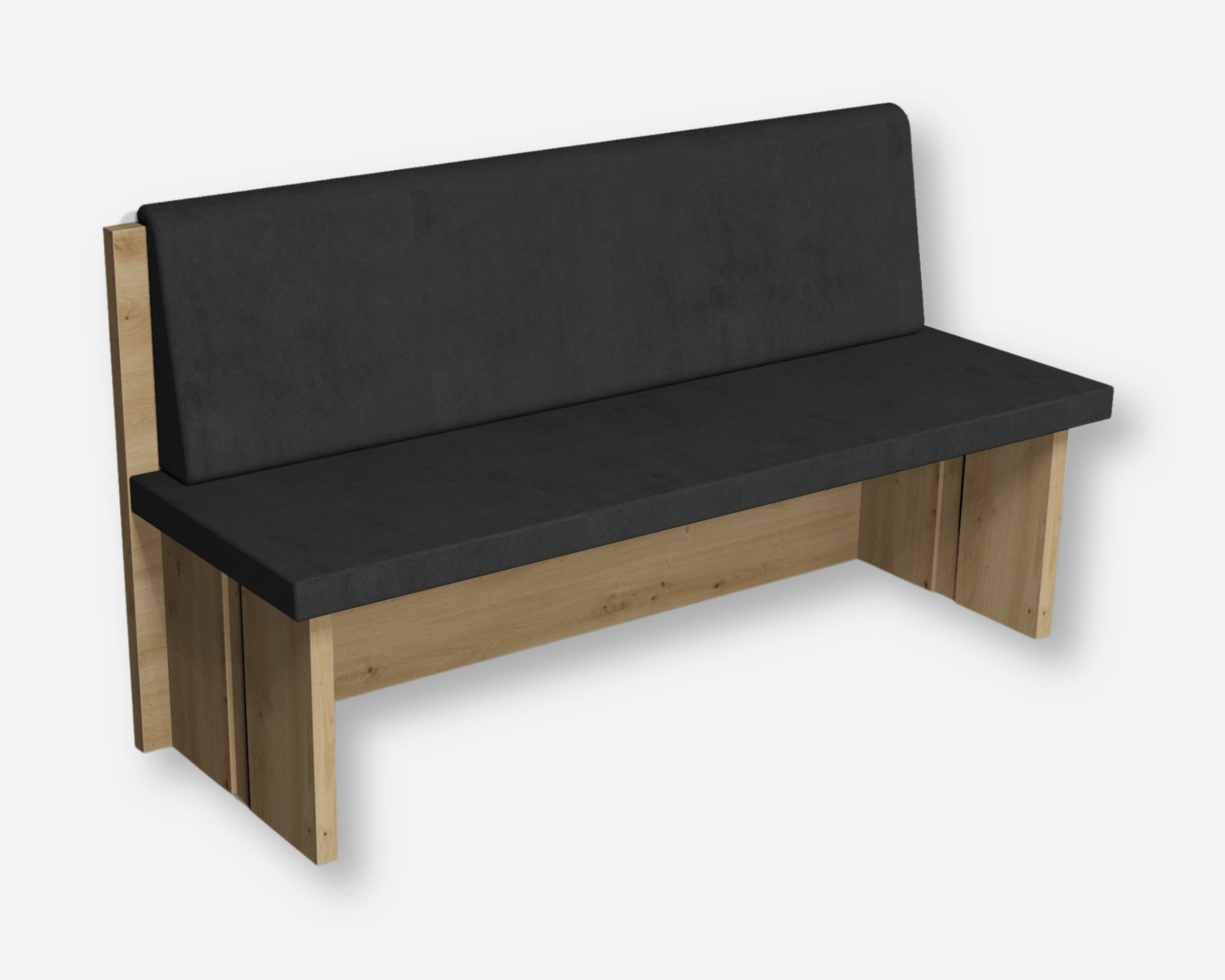 Ravna klop po naročilu s tapeciranim sediščem. Izbirate lahko med dvema modeloma naslonov (delna in polna višina). Višino naslona je možno prilagoditi. Na voljo so različni dodatki (predal pod sediščem, dvižno sedišče z boksom za spravilo, polica za naslonom, radiatorska rešetka z izrezom za kroženje zraka)