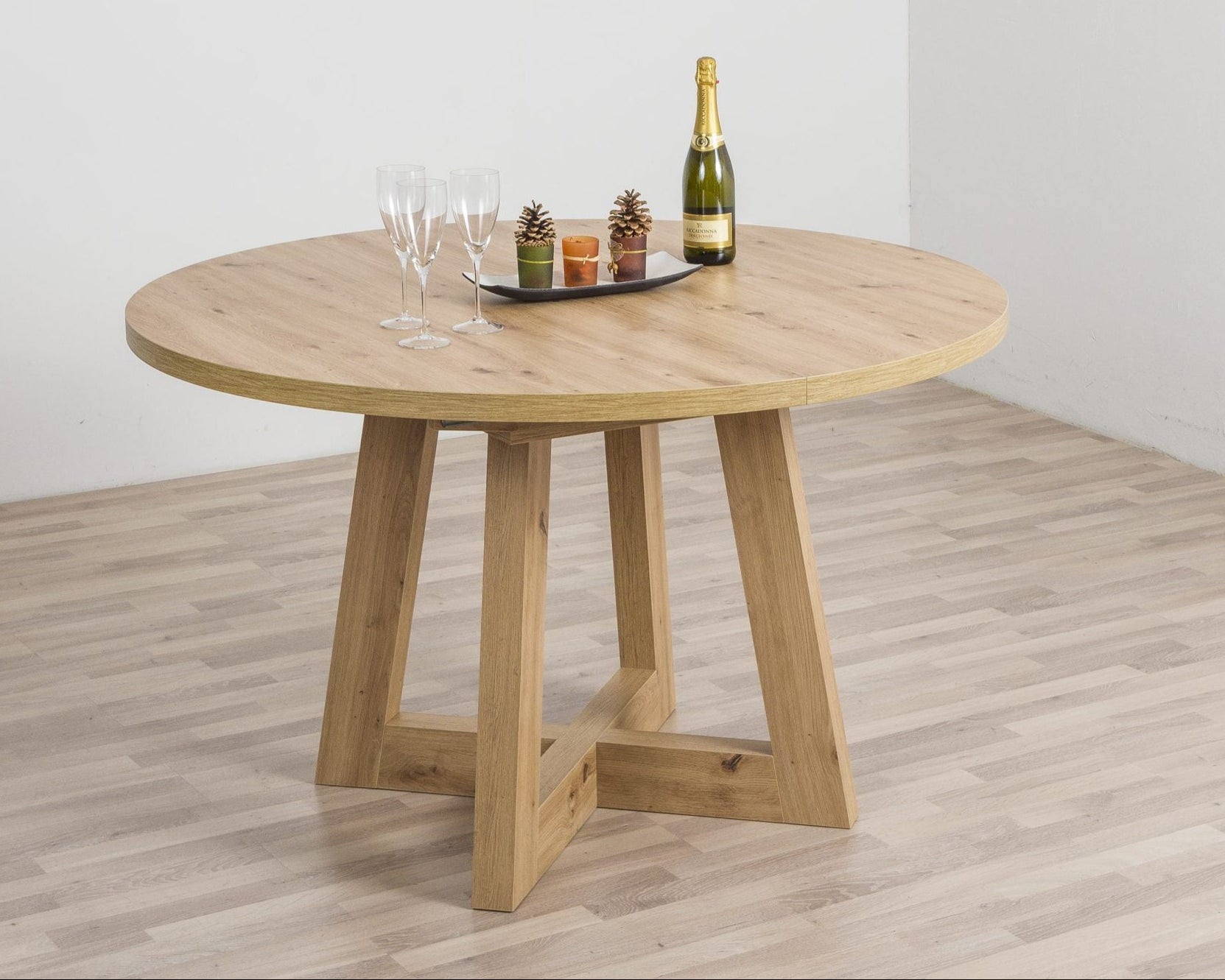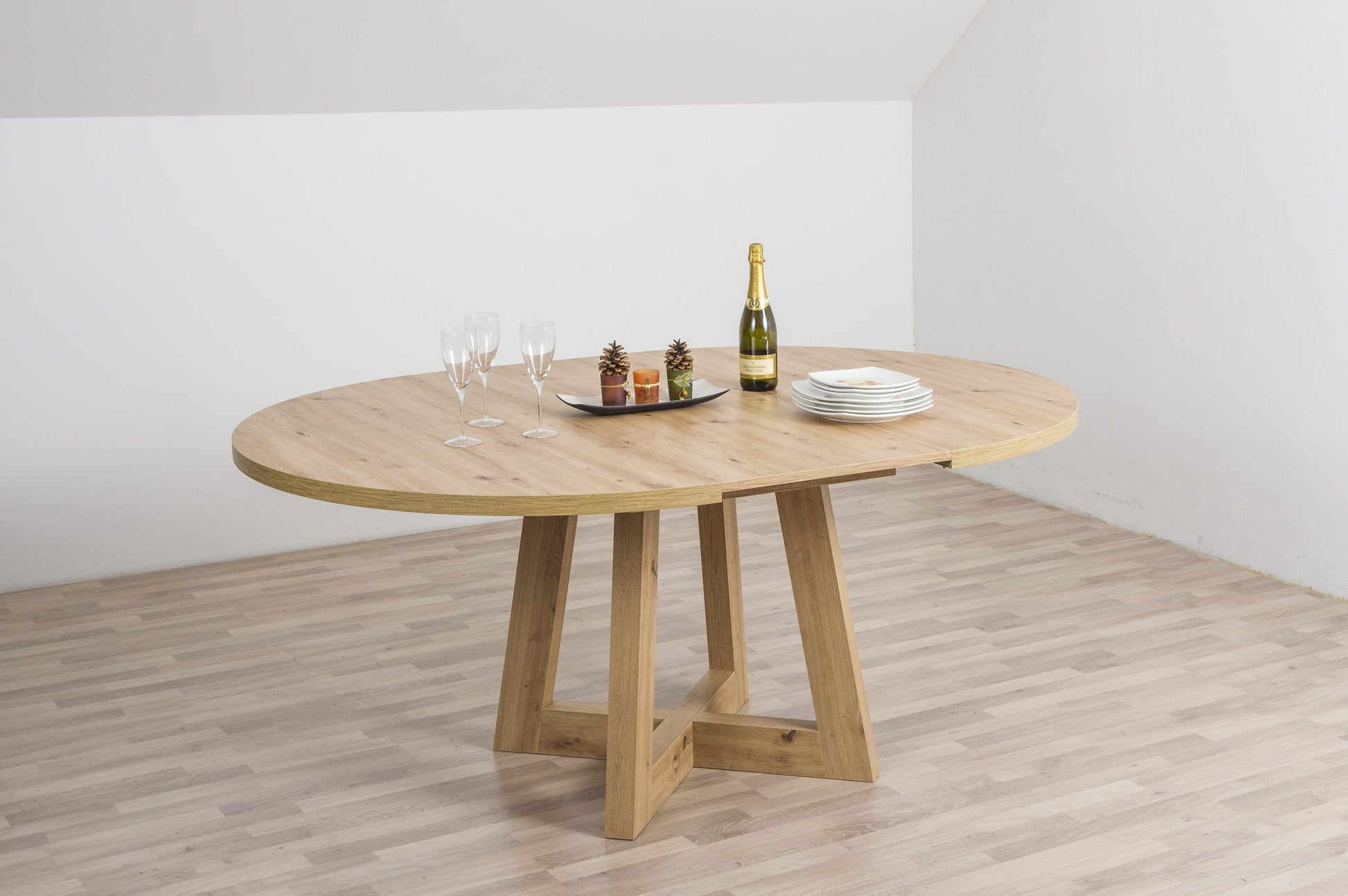 Raztegljiva okrogla miza po meri s centralnim stebrom in sredinskem butterfly podaljšanjem.