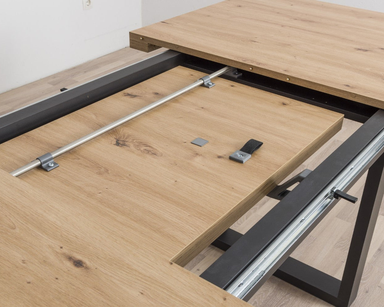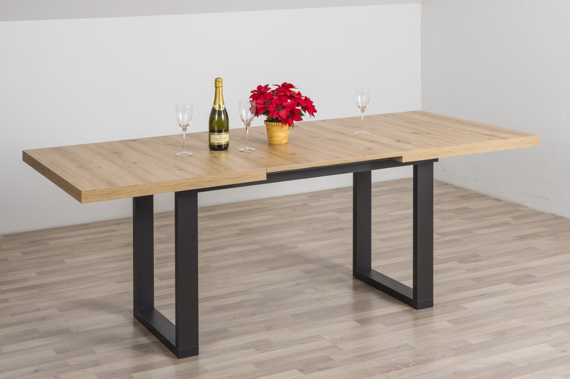 Miza s modernim podnožjem U-oblike in sredinskim raztegom z butterfly mehanizmom, ki omogoča enostavno podaljševanje. Osnovna konstrukcija in noge so izdelane iz črnega dekorja, tako da lahko mizo kombinirate s črnimi stoli.